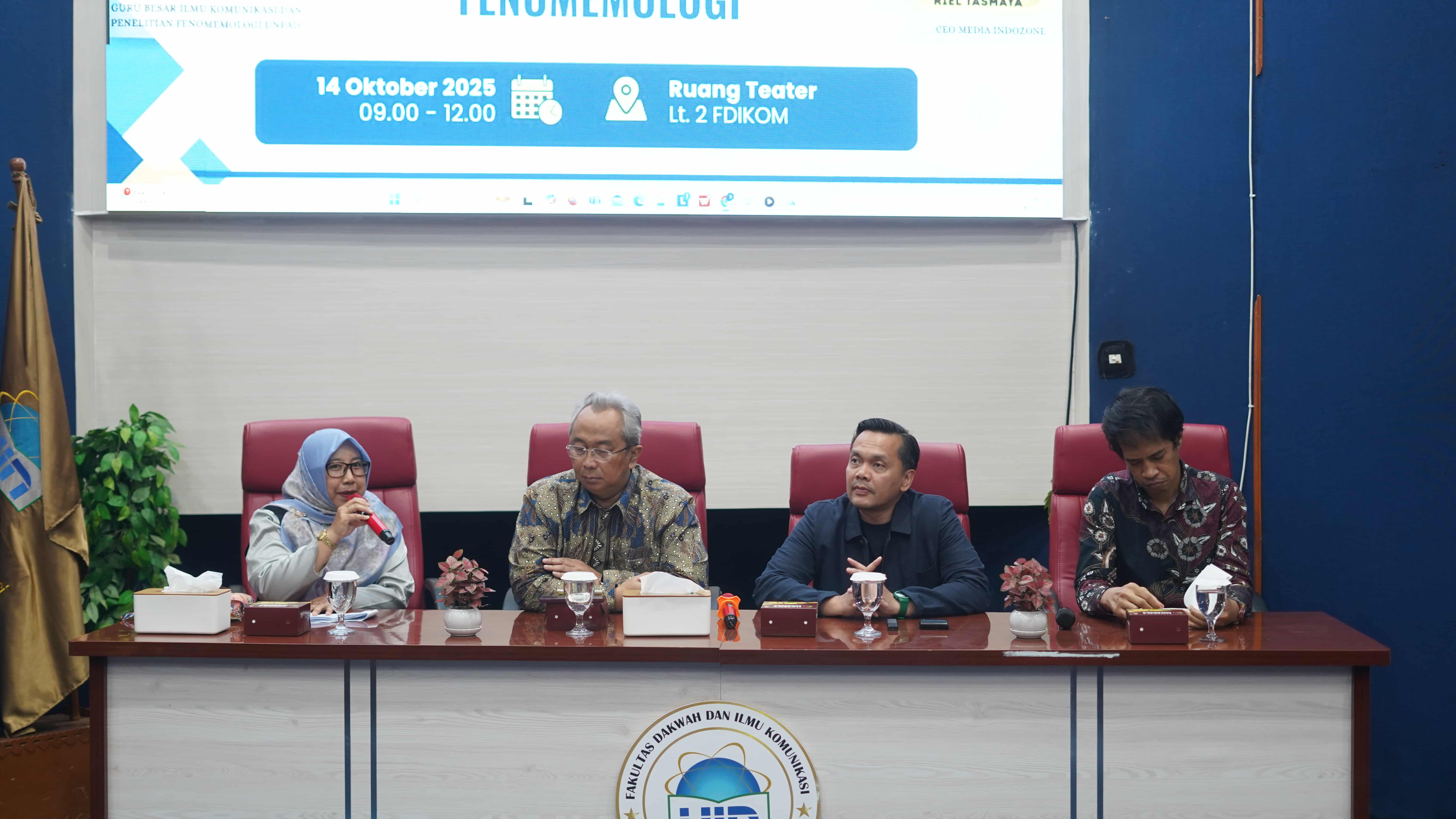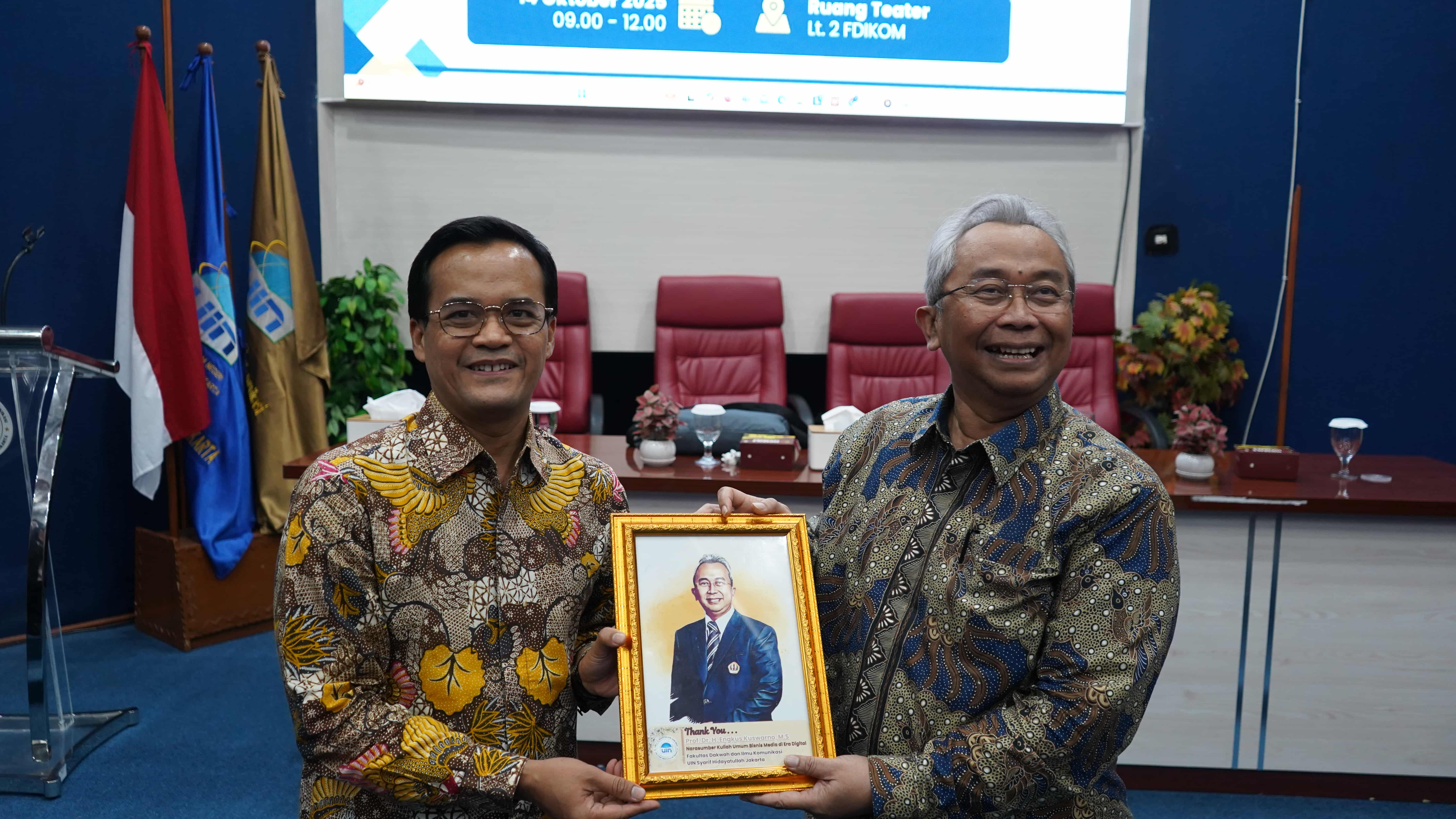 FDIKOM, Berita UIN Online - Fakultas Dakwah dan Ilmu Komunikasi (FDIKOM) UIN Syarif Hidayatullah Jakarta sukses menggelar kuliah umum bertajuk “Bisnis Media di Era Digital: Strategi Bisnis dan Realitas Fenomenologis” pada Selasa, 14 Oktober 2025, pukul 09.00–12.00 WIB, bertempat di Ruang Teater Lantai 2 FDIKOM, Kampus UIN Syarif Hidayatullah Jakarta, Ciputat. Kegiatan kolaboratif antara Program Studi Jurnalistik dan Program Studi Komunikasi dan Penyiaran Islam (KPI) ini dihadiri oleh 150 peserta yang terdiri dari dosen dan mahasiswa dari berbagai program studi di lingkungan FDIKOM.