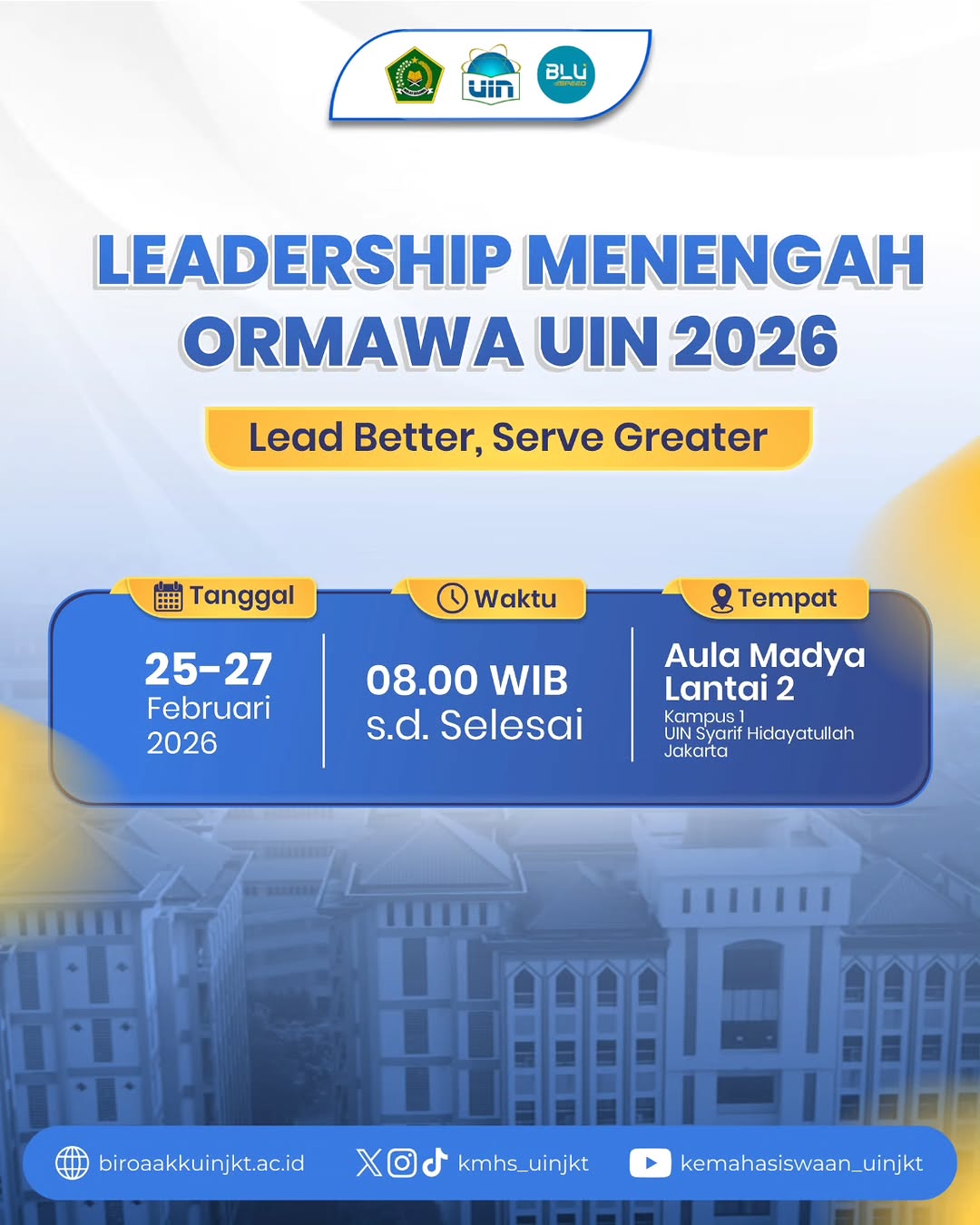 Leadership Menengah Ormawa UIN 2026 hadir sebagai ruang pembelajaran dan penguatan kapasitas bagi pengurus organisasi mahasiswa untuk bertumbuh menjadi pemimpin yang lebih siap dan berdampak.