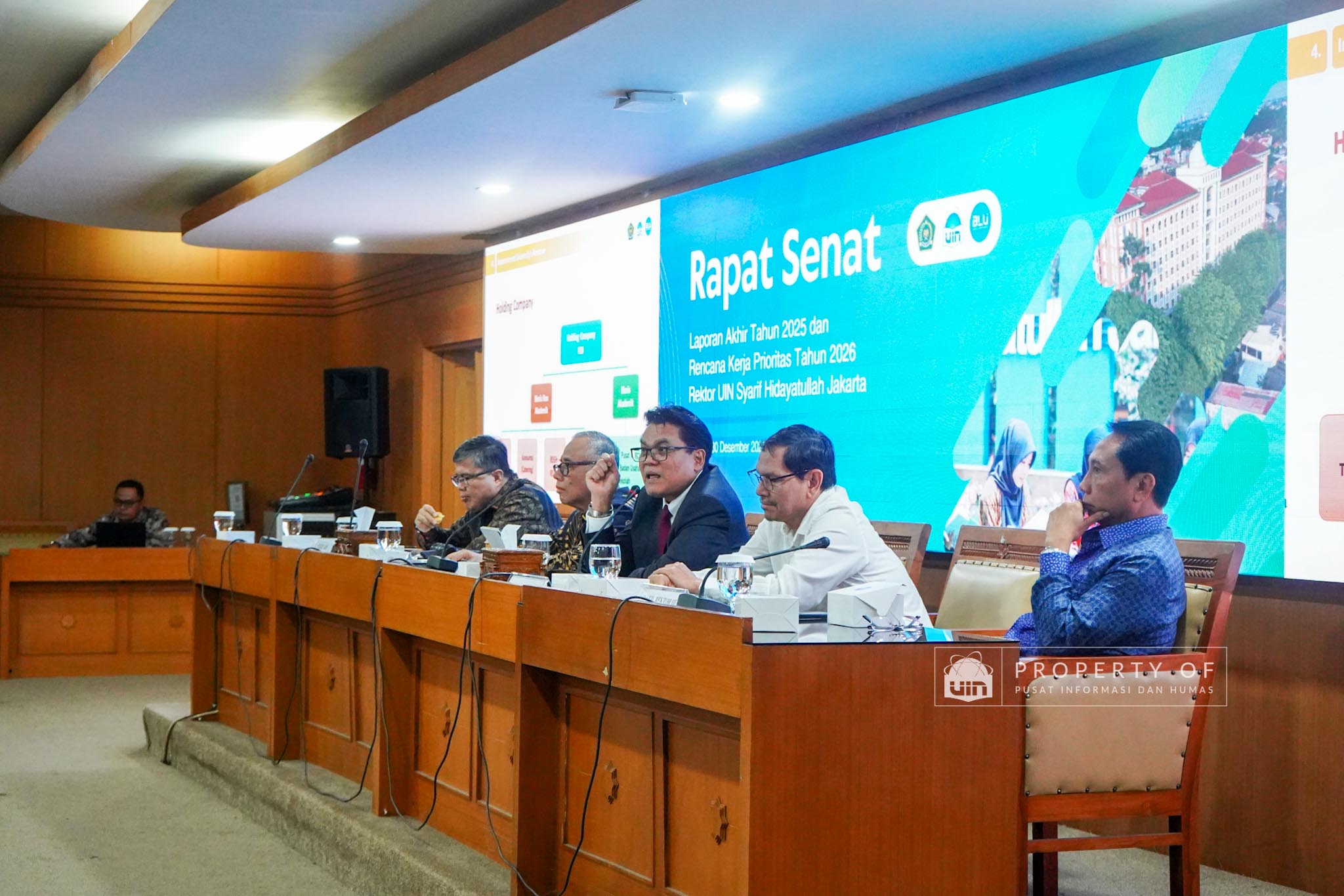Ruang Diorama, Berita UIN Online – Rektor UIN Syarif Hidayatullah Jakarta, Prof. Asep Saepudin Jahar, M.A., Ph.D., paparkan hasil kinerja tahun 2025 dan rencana program tahun 2026 dalam Rapat Senat Laporan Akhir Tahun 2025 dan Rencana Kerja Prioritas Tahun 2026 Rektor UIN Jakarta, Selasa (30/12/2025). Dalam pemaparannya, Rektor tidak hanya menyampaikan capaian kinerja selama periode tahun 2025, tetapi juga menggarisbawahi perubahan mendasar dalam tata kelola akademik, keuangan, dan kelembagaan. Ia juga menegaskan arah transformasi besar universitas menuju Perguruan Tinggi Negeri Badan Hukum (PTNBH).