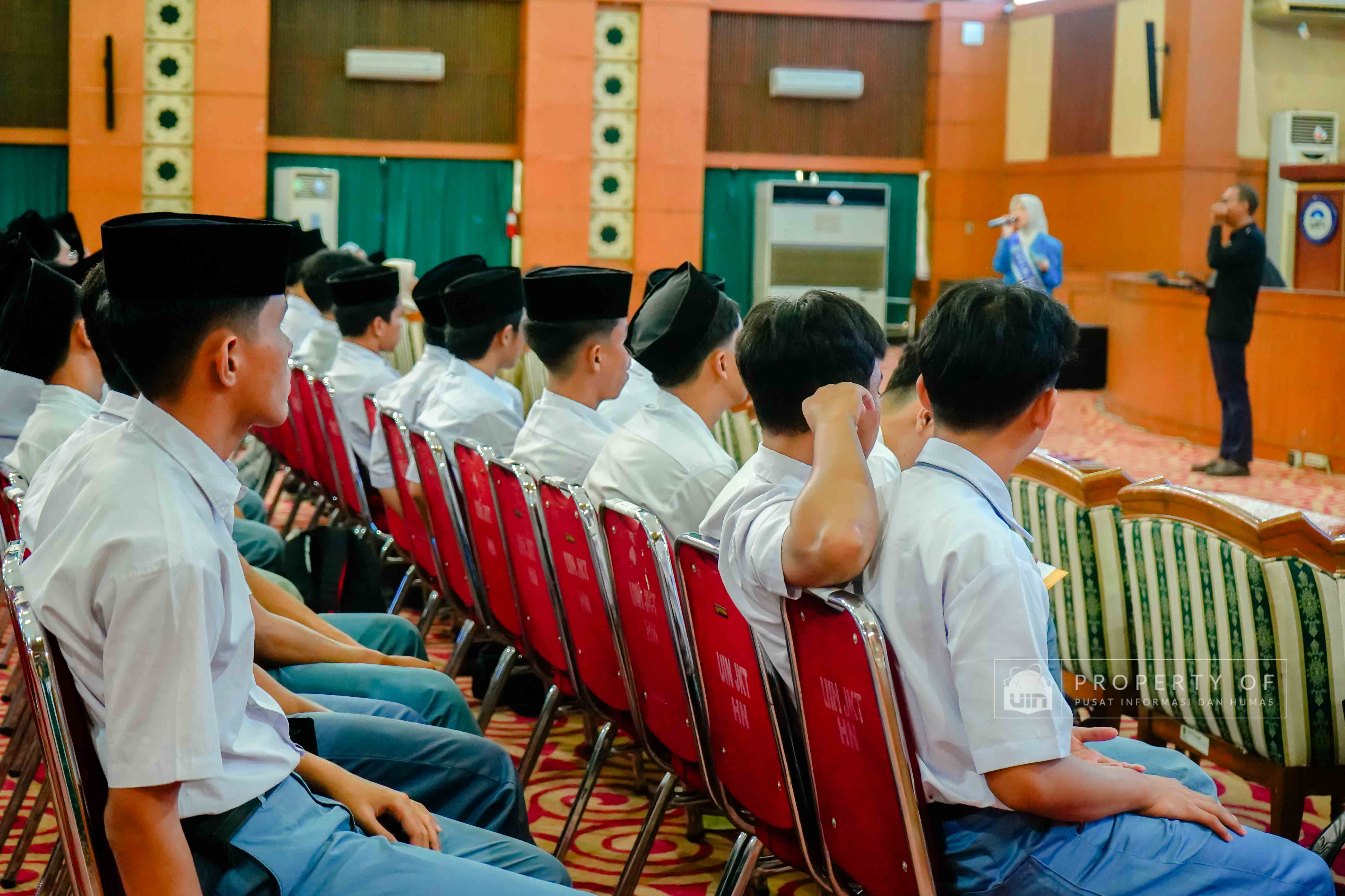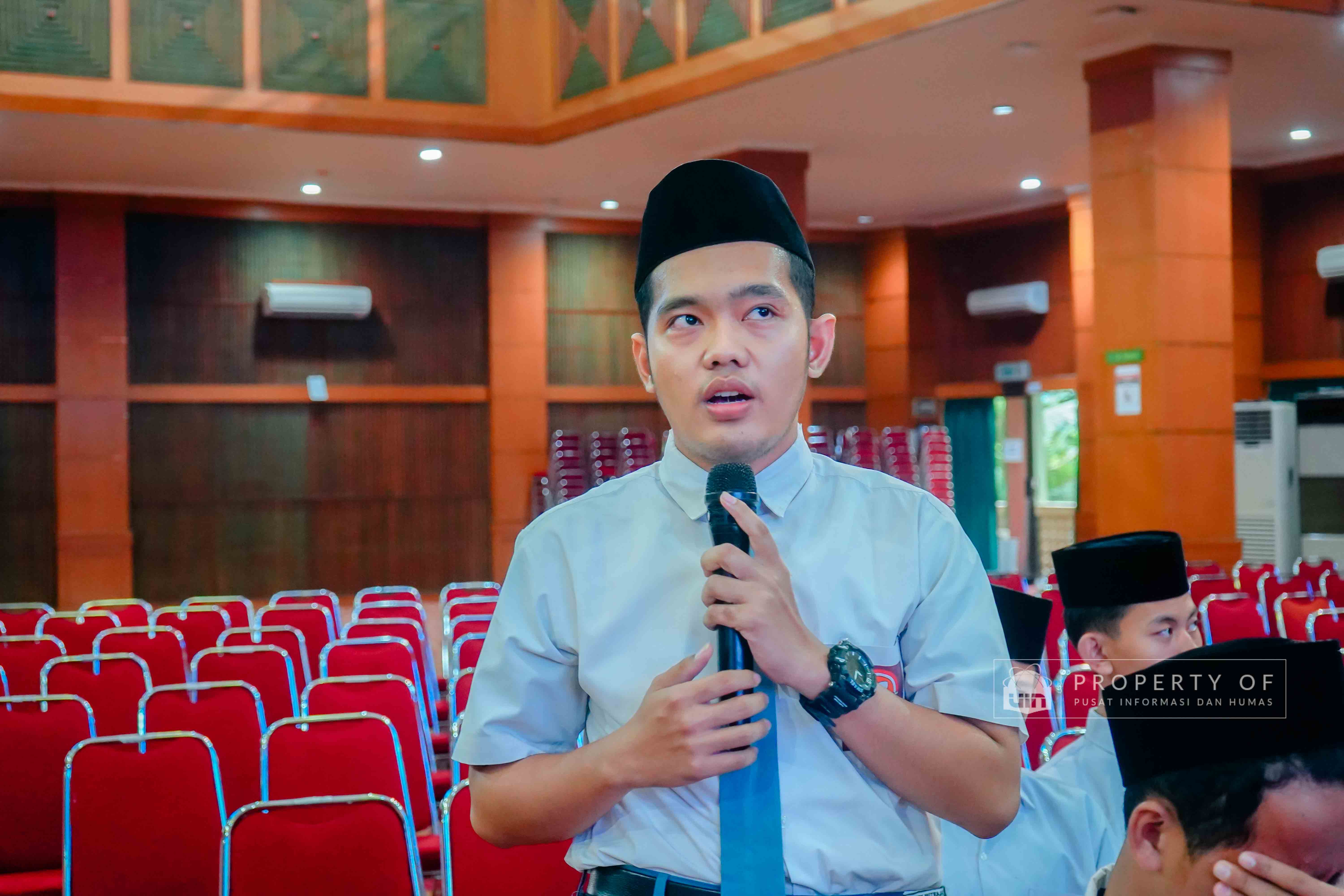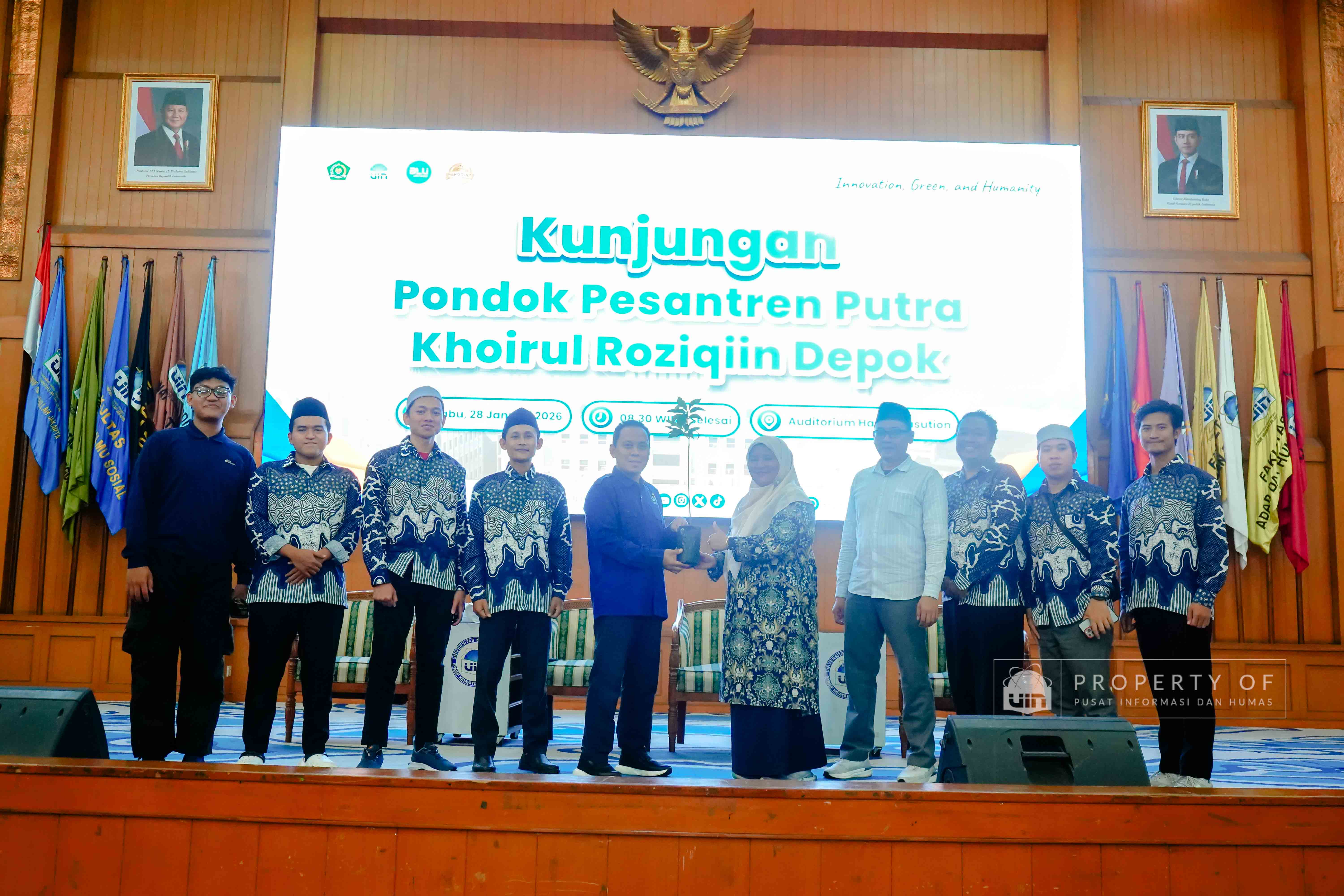 UIN Syarif Hidayatullah Jakarta menerima kunjungan rihlah ilmiah dari Pondok Pesantren Putra Khoirul Roziqin, Beji, Depok, yang berlangsung di Auditorium Harun Nasution pada Rabu (28/01/2026). Kunjungan ini bertujuan mengenalkan lingkungan akademik, ragam keilmuan, serta budaya Green Campus kepada para santri dan pendidik, sekaligus memberikan gambaran tentang kehidupan perkuliahan dan peluang pengembangan diri di lingkungan perguruan tinggi. (Fotografer: Talitha Zhafirah Qutratu'ain/Teks: Tiara Septiana Dewi/Pusat Informasi dan Humas UIN Jakarta)
