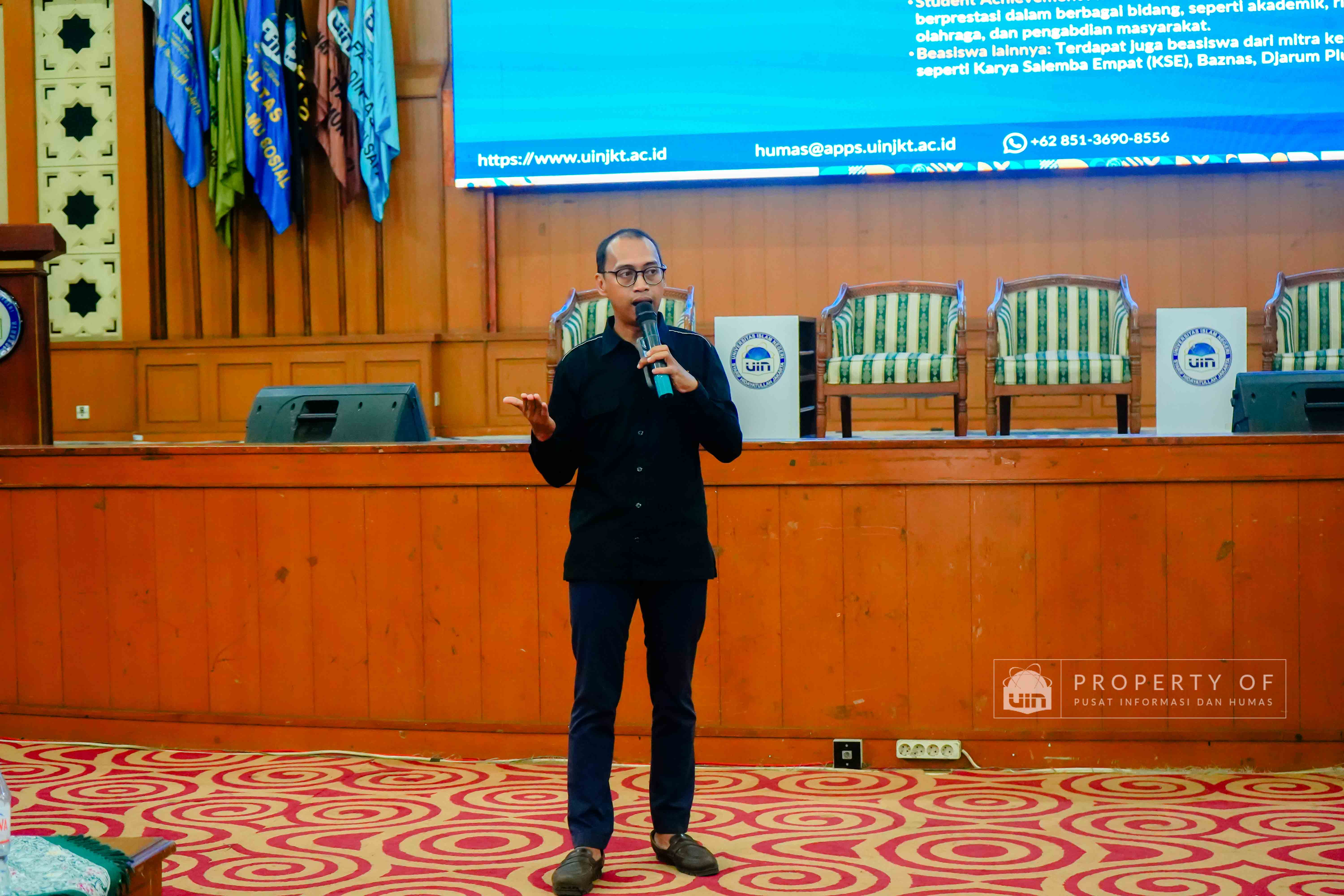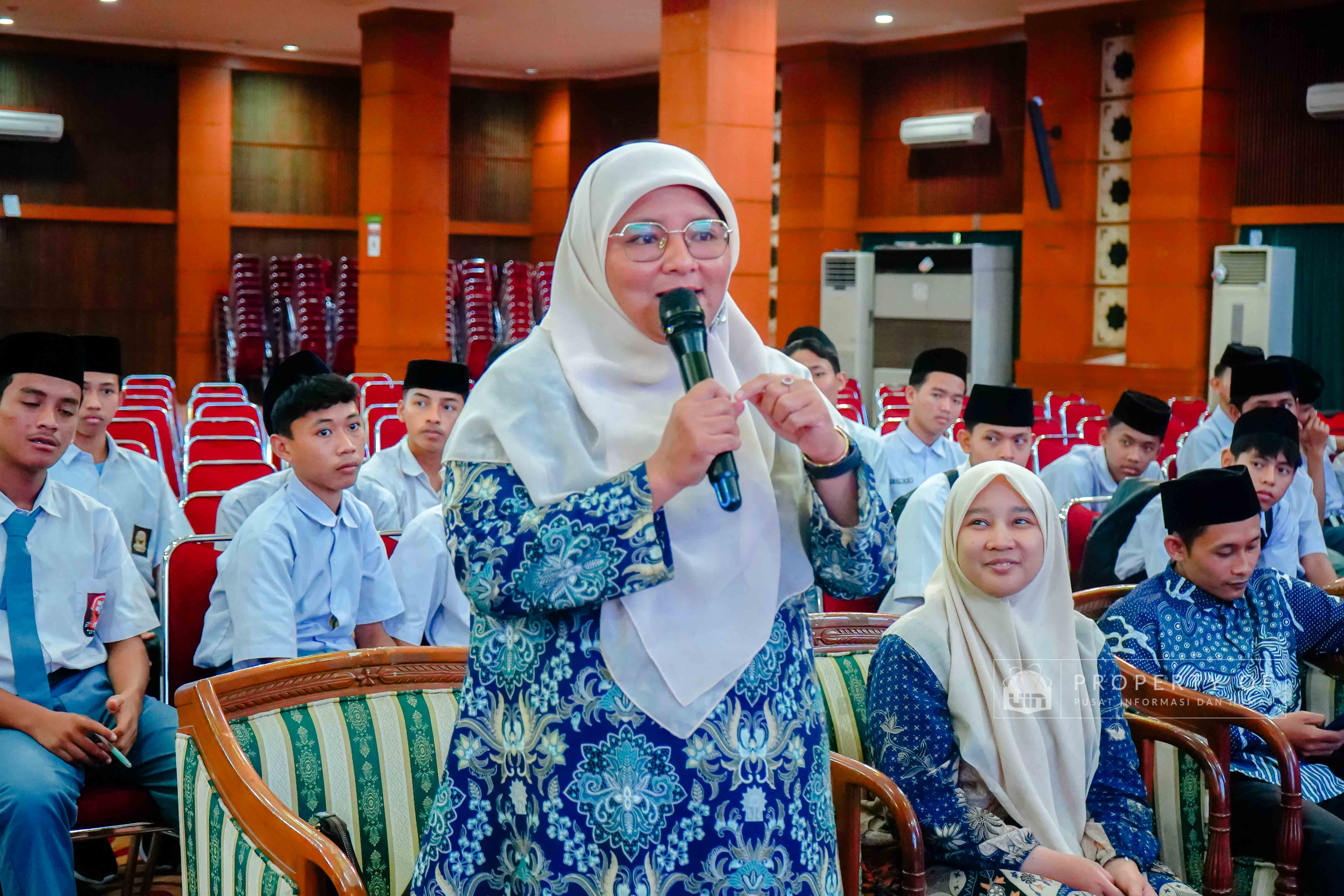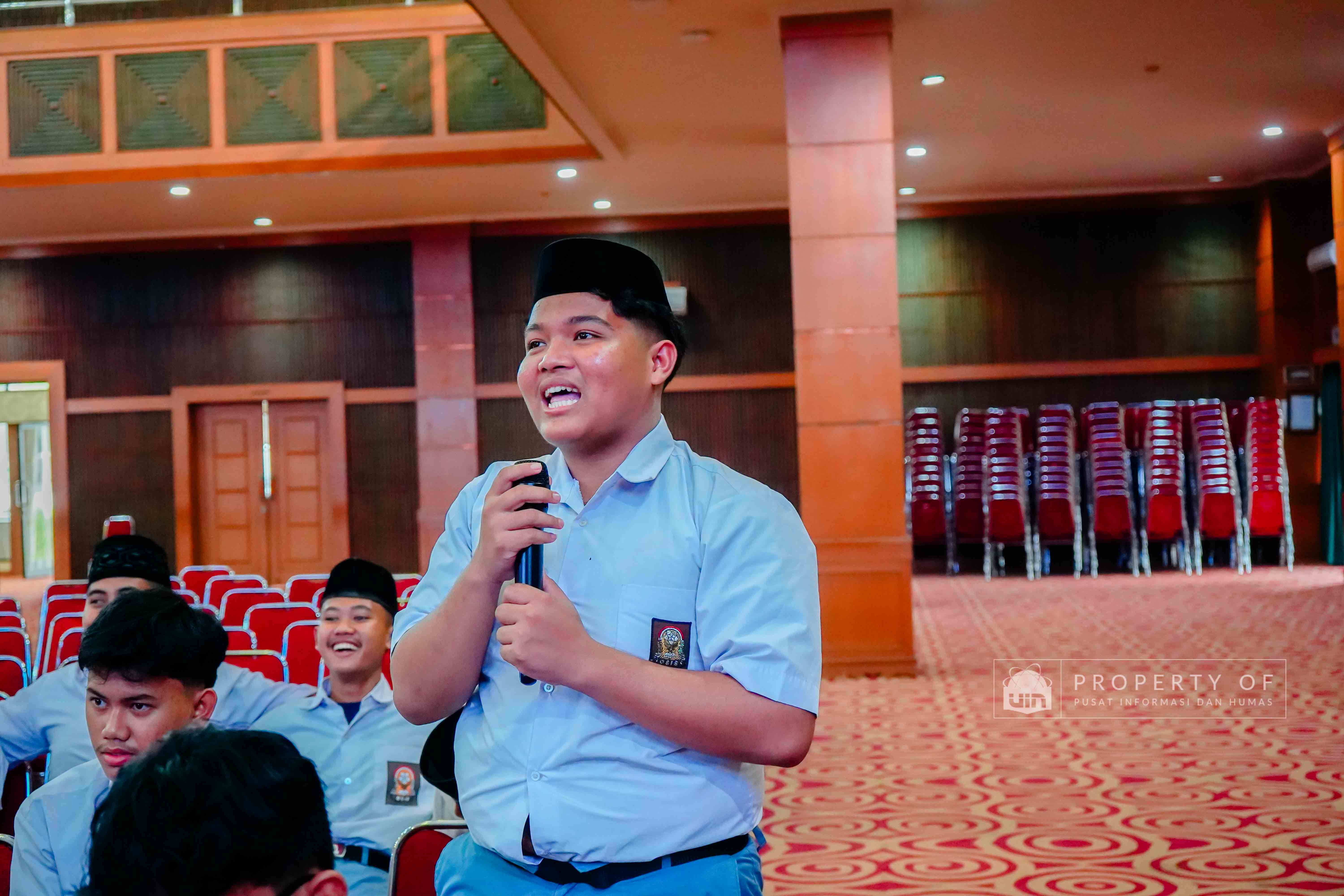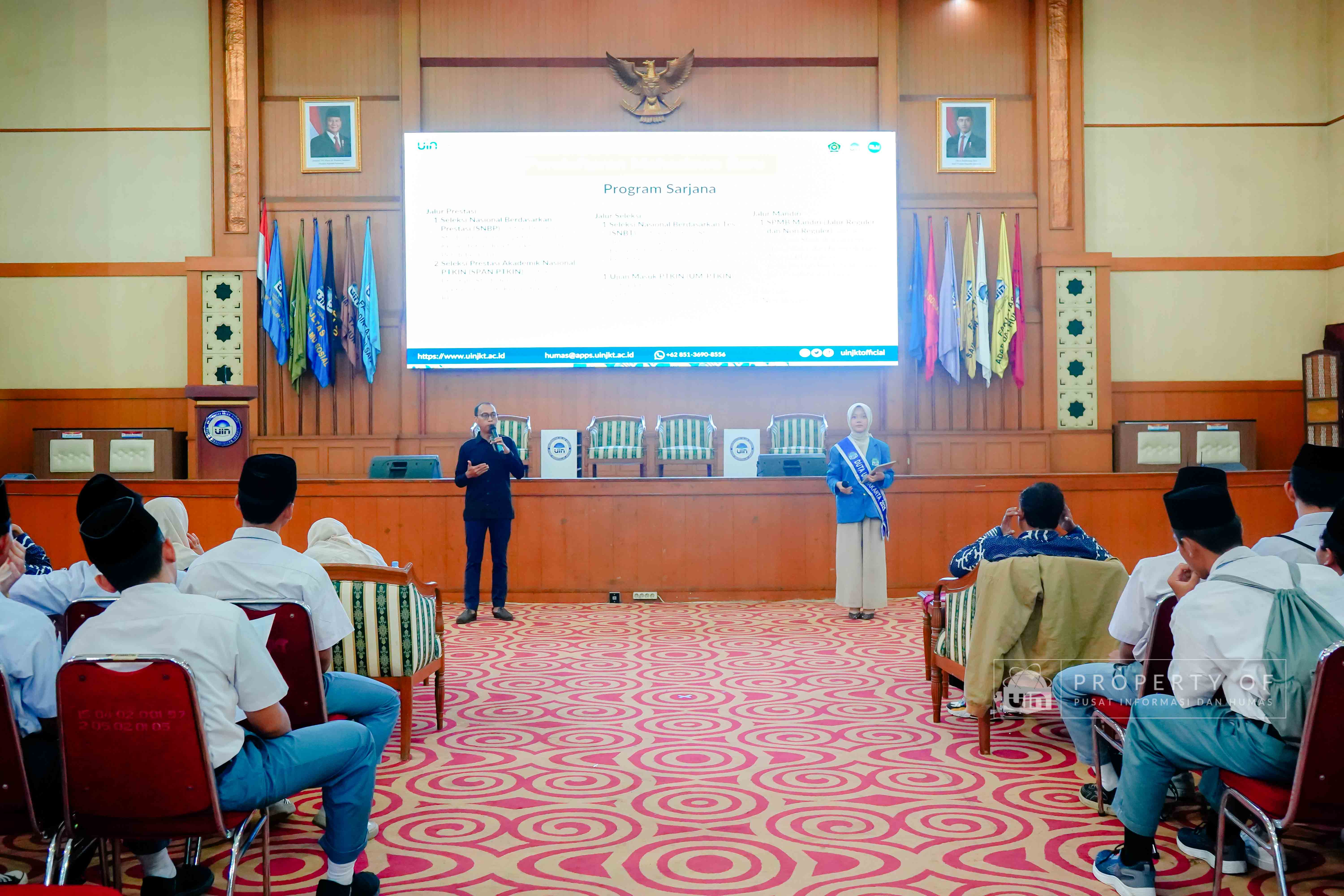 UIN Syarif Hidayatullah Jakarta menerima kunjungan rihlah ilmiah dari Pondok Pesantren Putra Khoirul Roziqin, Beji, Depok, yang berlangsung di Auditorium Harun Nasution pada Rabu (28/01/2026). Kunjungan ini bertujuan mengenalkan lingkungan akademik, ragam keilmuan, serta budaya Green Campus kepada para santri dan pendidik, sekaligus memberikan gambaran tentang kehidupan perkuliahan dan peluang pengembangan diri di lingkungan perguruan tinggi. (Fotografer: Talitha Zhafirah Qutratu'ain/Teks: Tiara Septiana Dewi/Pusat Informasi dan Humas UIN Jakarta)