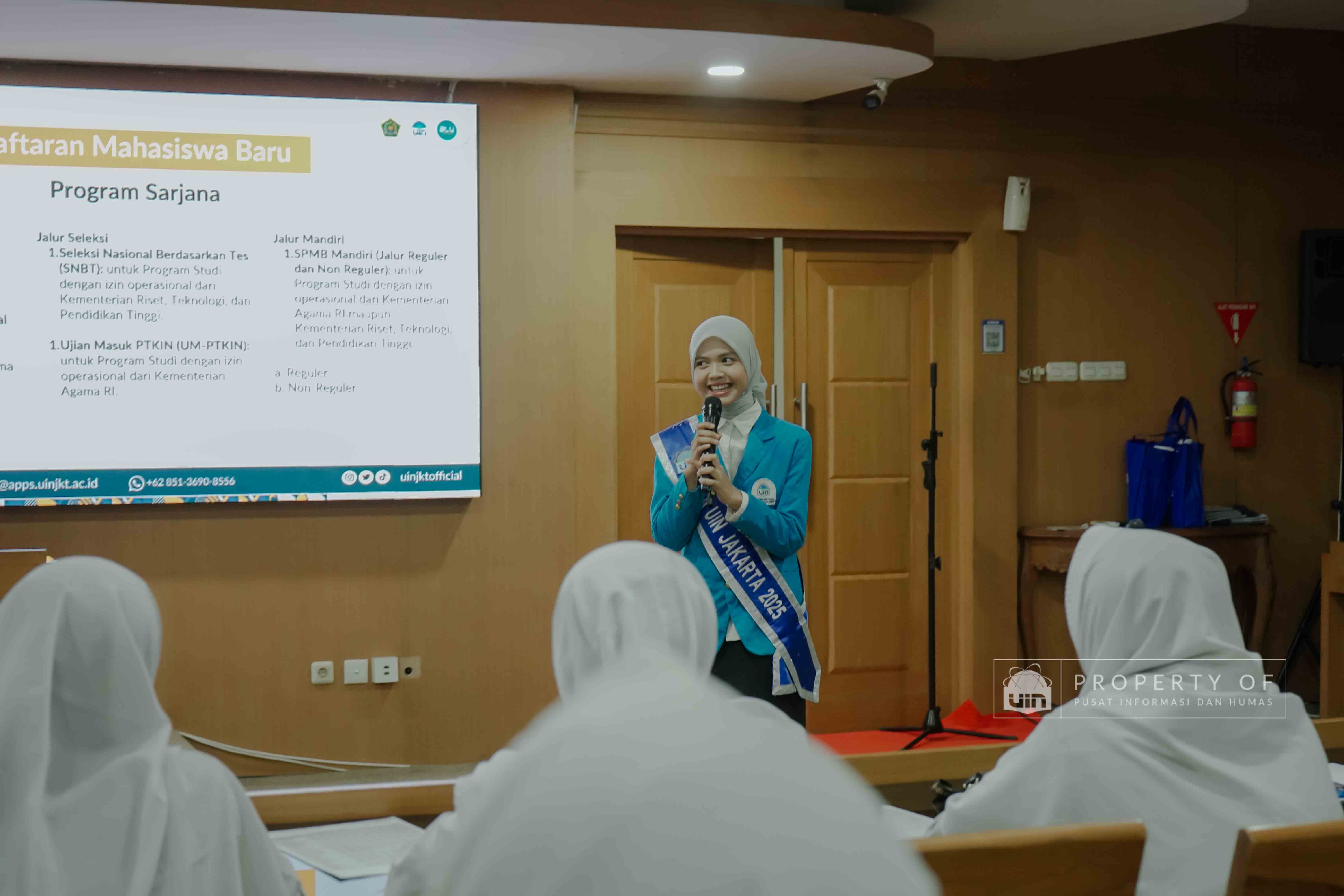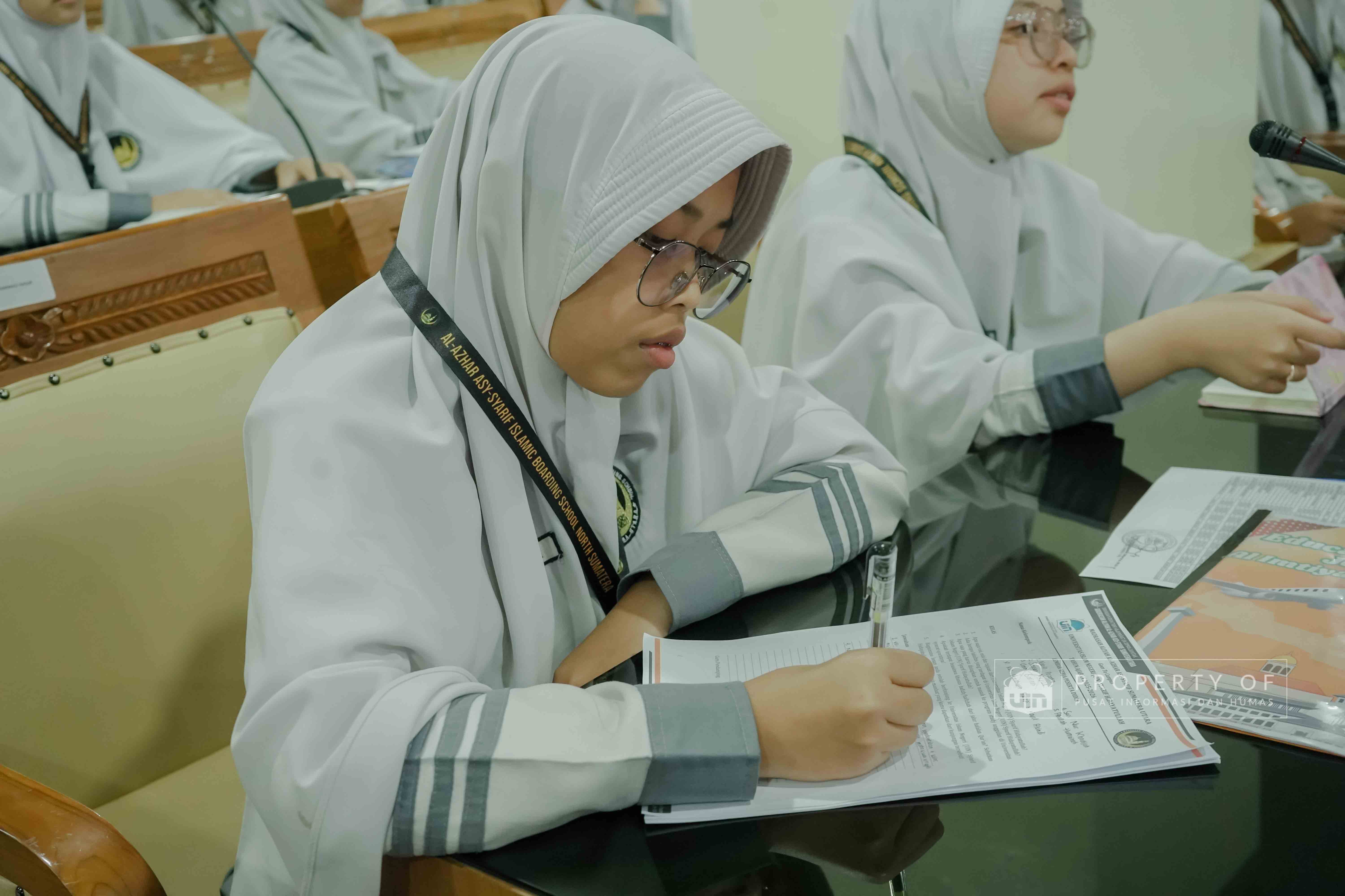 UIN Syarif Hidayatullah Jakarta menerima kunjungan SMA Al-Azhar Asy-Syarif Medan dalam kegiatan educational trip pada Senin (06/03/2026). Sebanyak 75 siswa mengikuti kegiatan untuk mengenal fakultas serta jalur penerimaan mahasiswa baru. Dalam kesempatan tersebut, UIN Jakarta memperkenalkan keunggulan integrasi ilmu dan Fakultas Kedokteran berakreditasi unggul. Kunjungan ini bertujuan memberikan gambaran awal bagi siswa dalam menentukan pilihan studi. (Fotografer: Talitha Zafirah Qutratu'ain/Teks: Tiara Septiana Dewi/Pusat Informasi dan Humas UIN Jakarta)