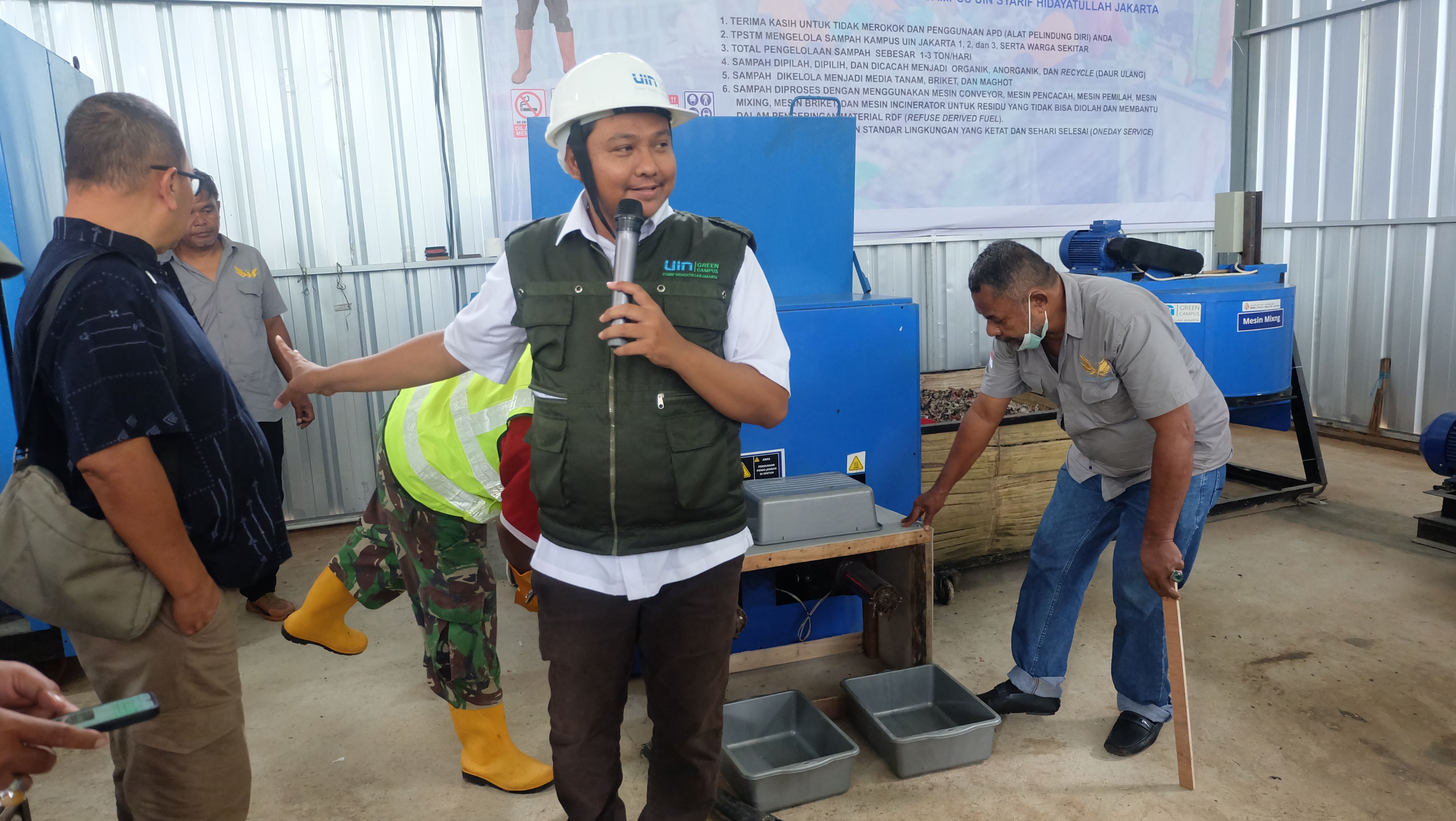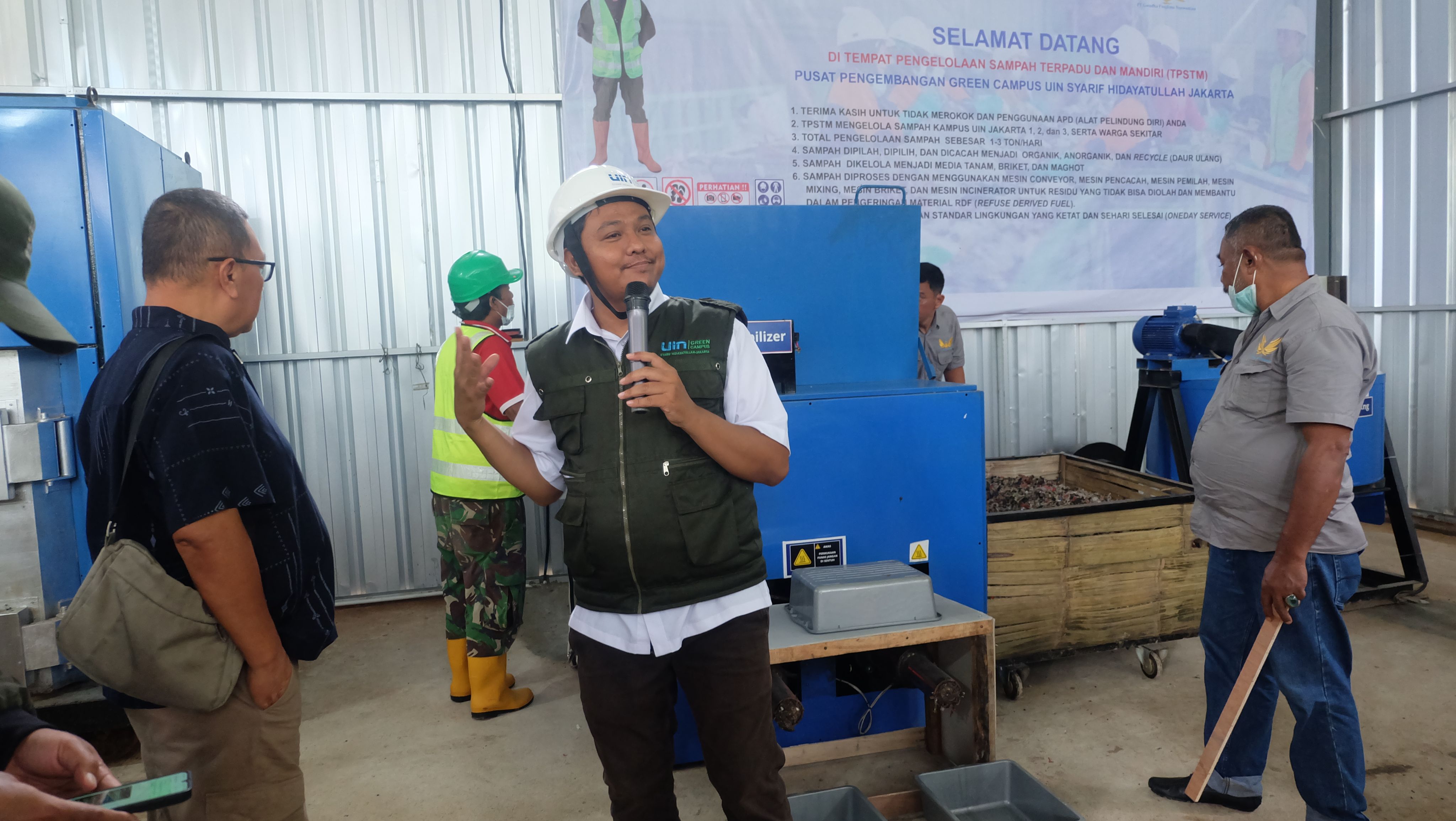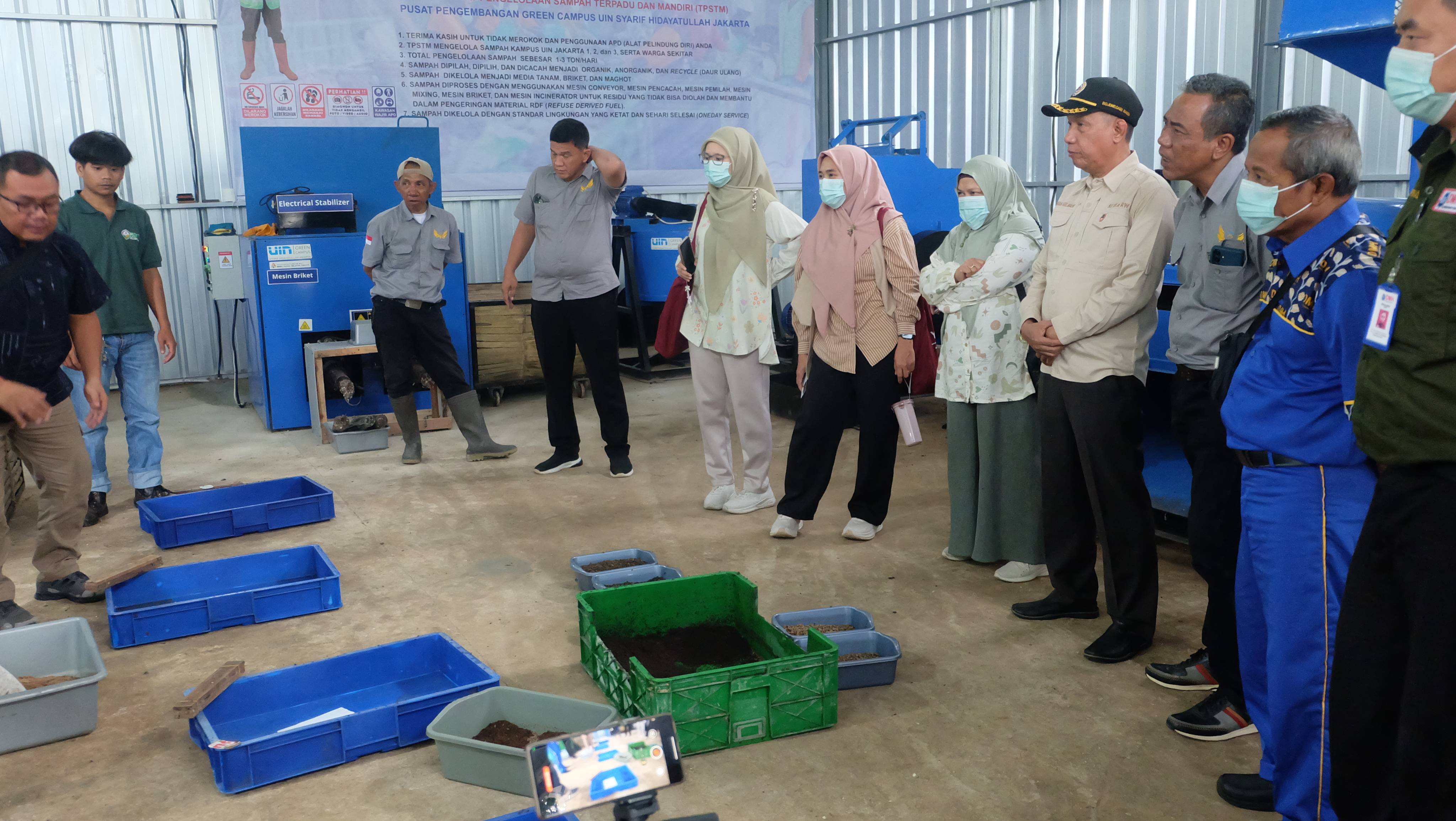 UIN Syarif Hidayatullah Jakarta melalui Pusat Pengembangan Green Campus meresmikan Tempat Pengelolaan Sampah Terpadu Mandiri (TPSTM) KALIFA (Kelola Alam dan Lingkungan Berfaidah) di Kampus PPG UIN Jakarta, Depok, pada Kamis (22/01/2026). TPSTM KALIFA dirancang untuk mengelola sampah secara mandiri dengan kapasitas hingga 3 ton per hari melalui proses pemilahan dan pengolahan sesuai jenis sampah, sebagai upaya penguatan pengelolaan lingkungan berkelanjutan di lingkungan kampus. (Fotografer: Syafira, Ainun, dan Resfati/Teks: Tiara Septiana Dewi/Pusat Informasi dan Humas UIN Jakarta)