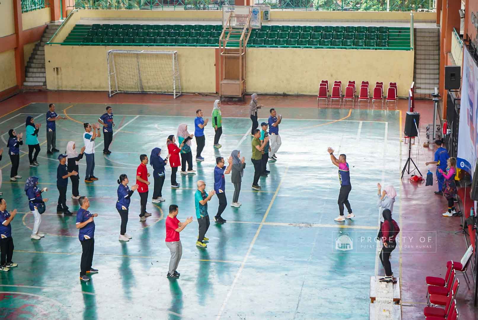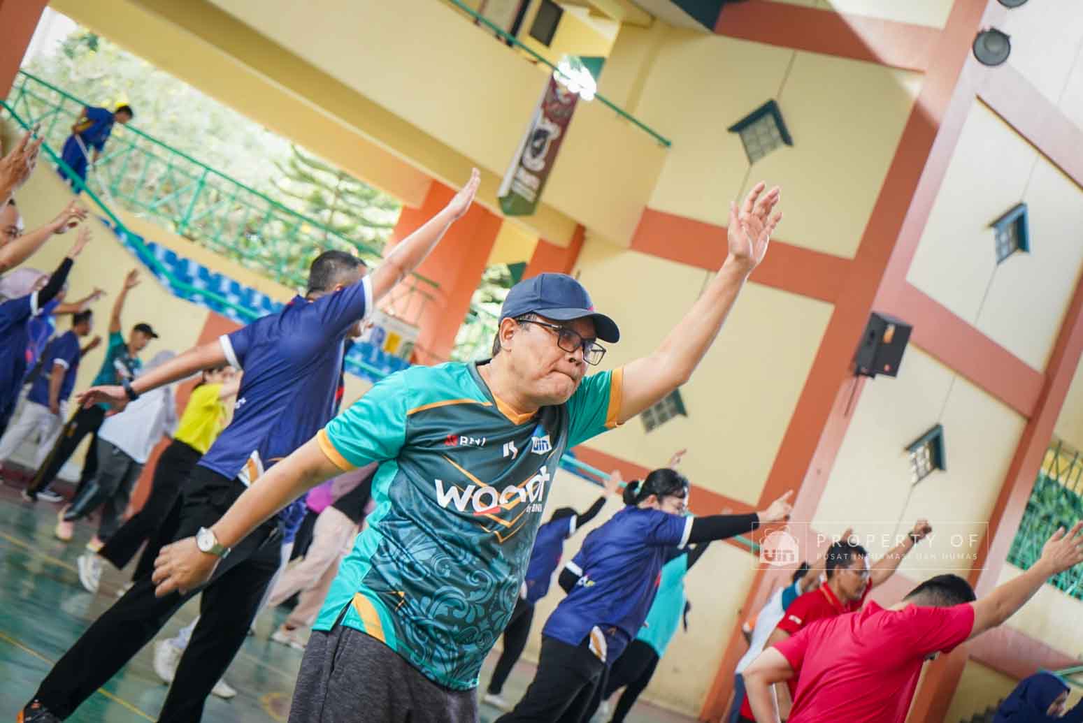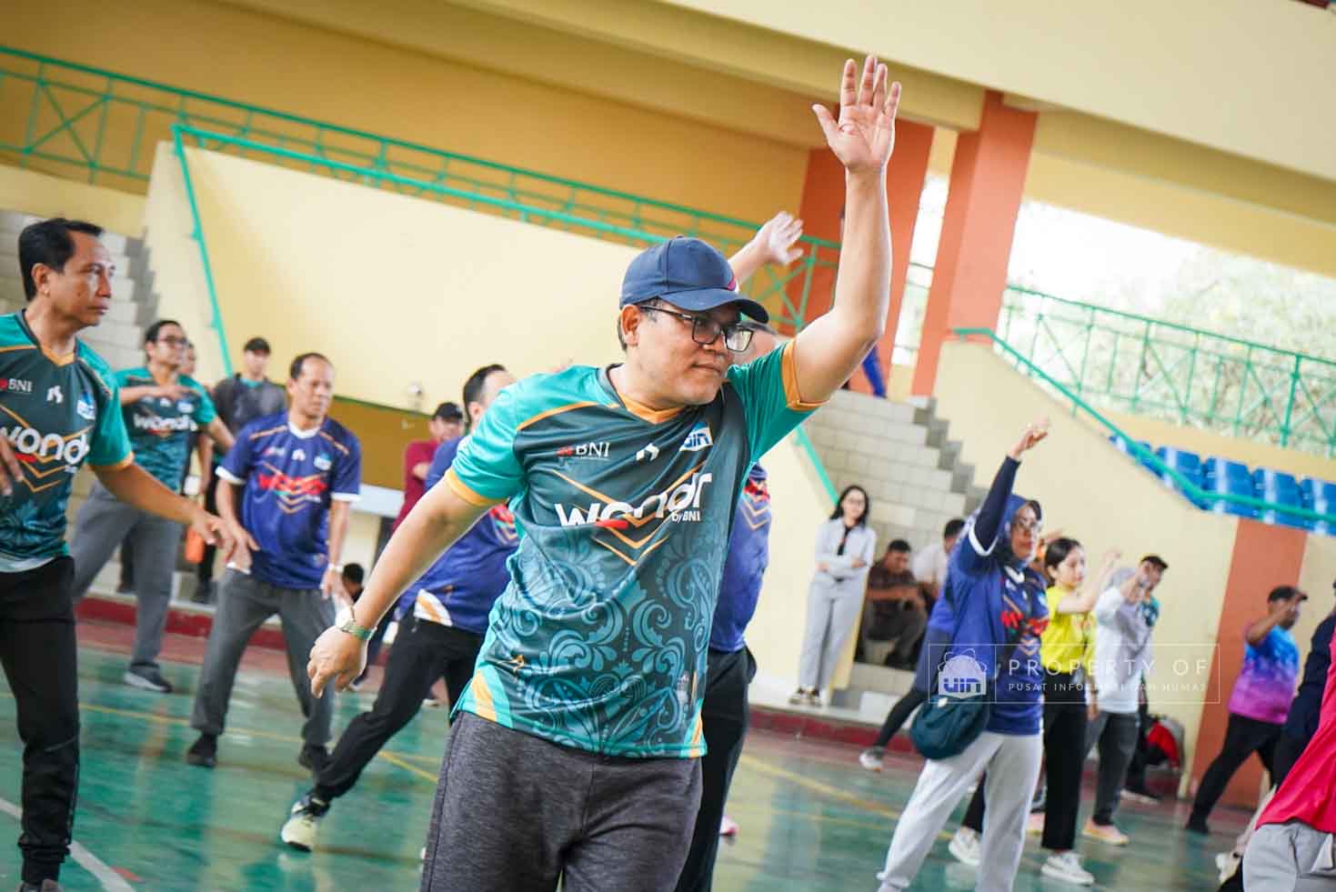UIN Jakarta dan BNI gelar senam pagi bersama di Lapangan Student Center pada Jum'at (24/10/2025). Acara ini mengundang jajaran akademik untuk berpartisipasi dalam kegiatan fisik seperti tenis meja, senam aerobik, dan olahraga kardio yang membantu menjaga kebugaran dan daya tahan tubuh. (Fotografer: Muhammad Ghifari Rahman/Teks: Muhamad Arifin Ilham/Pusat Informasi dan Humas UIN Jakarta)