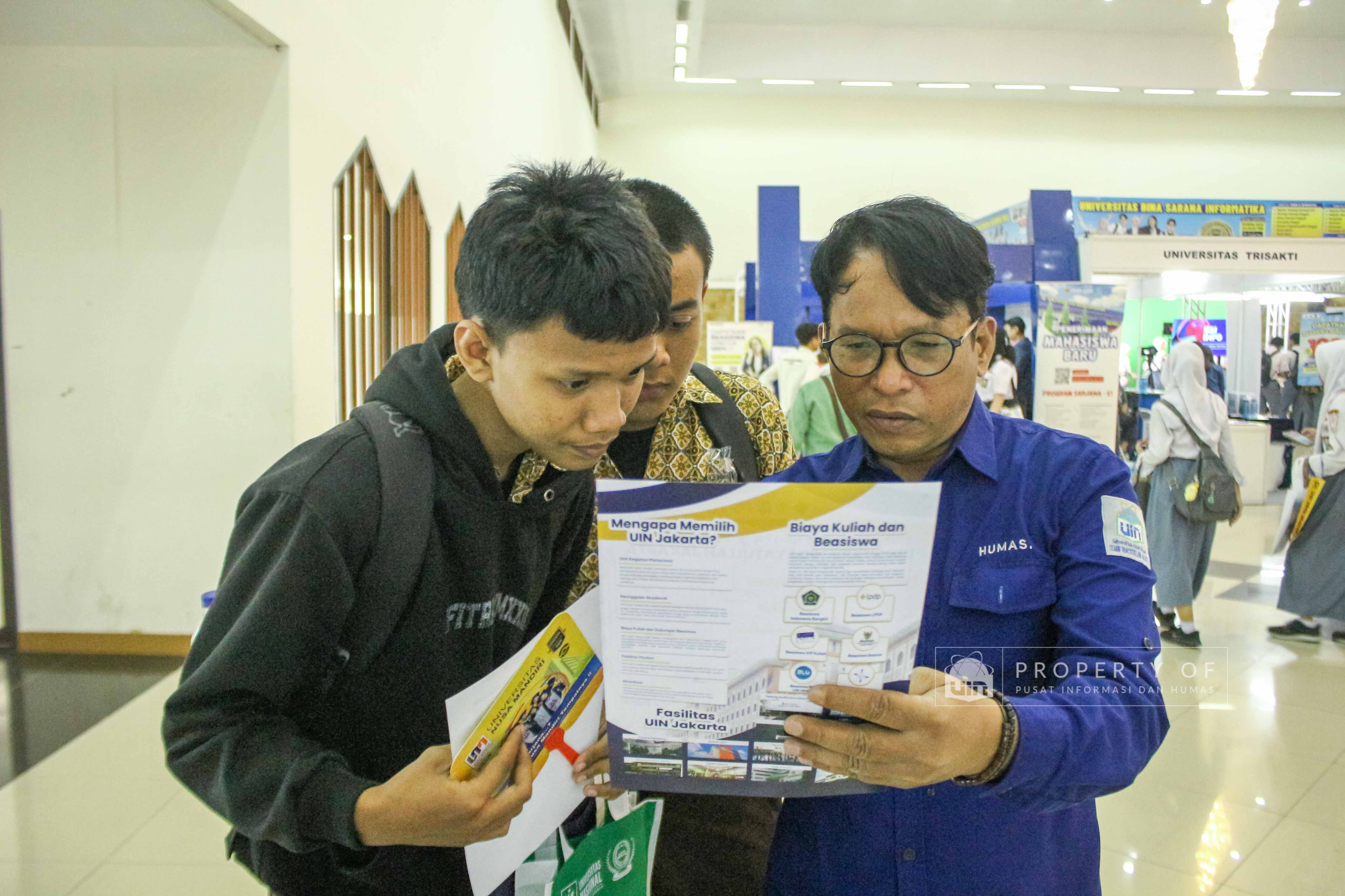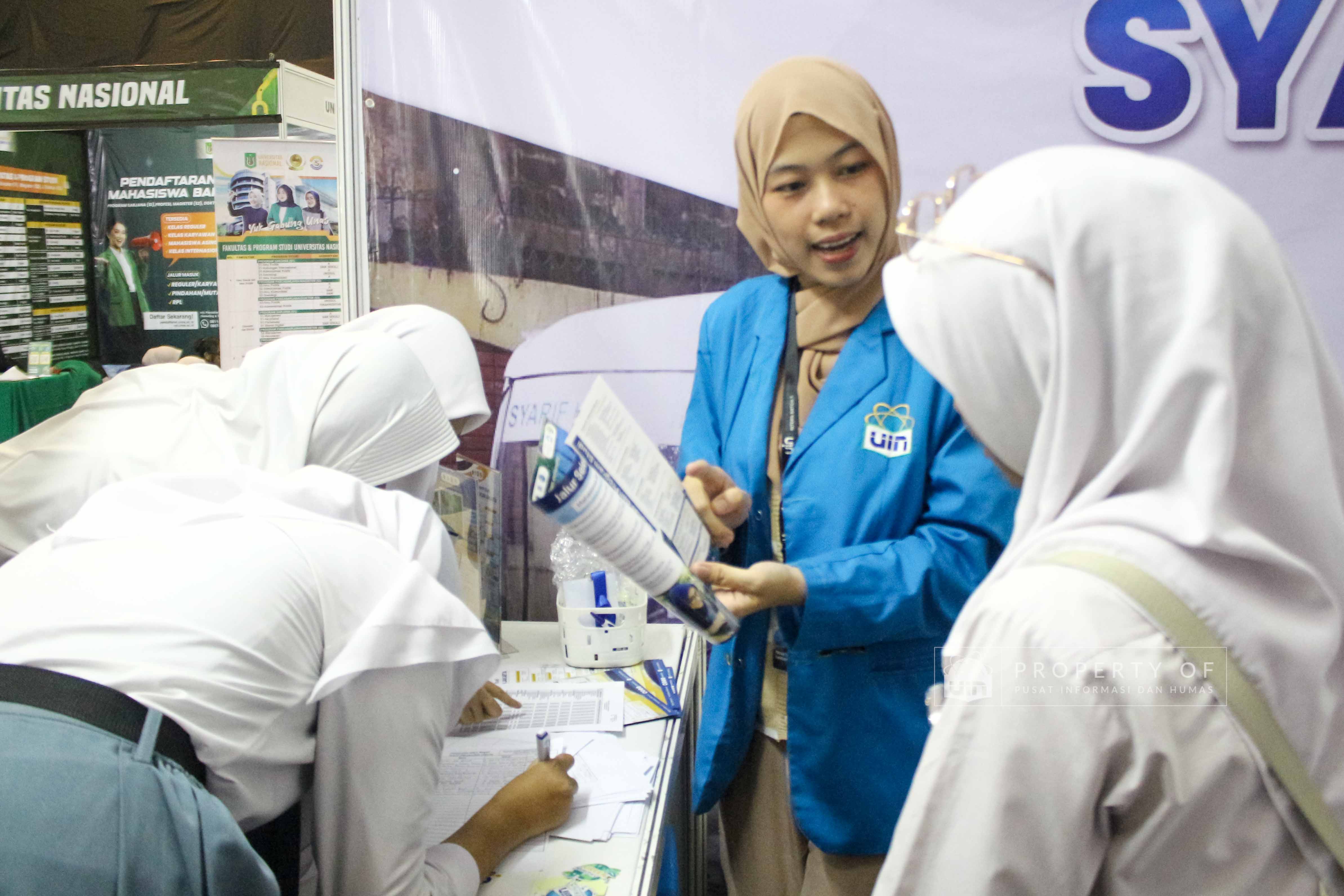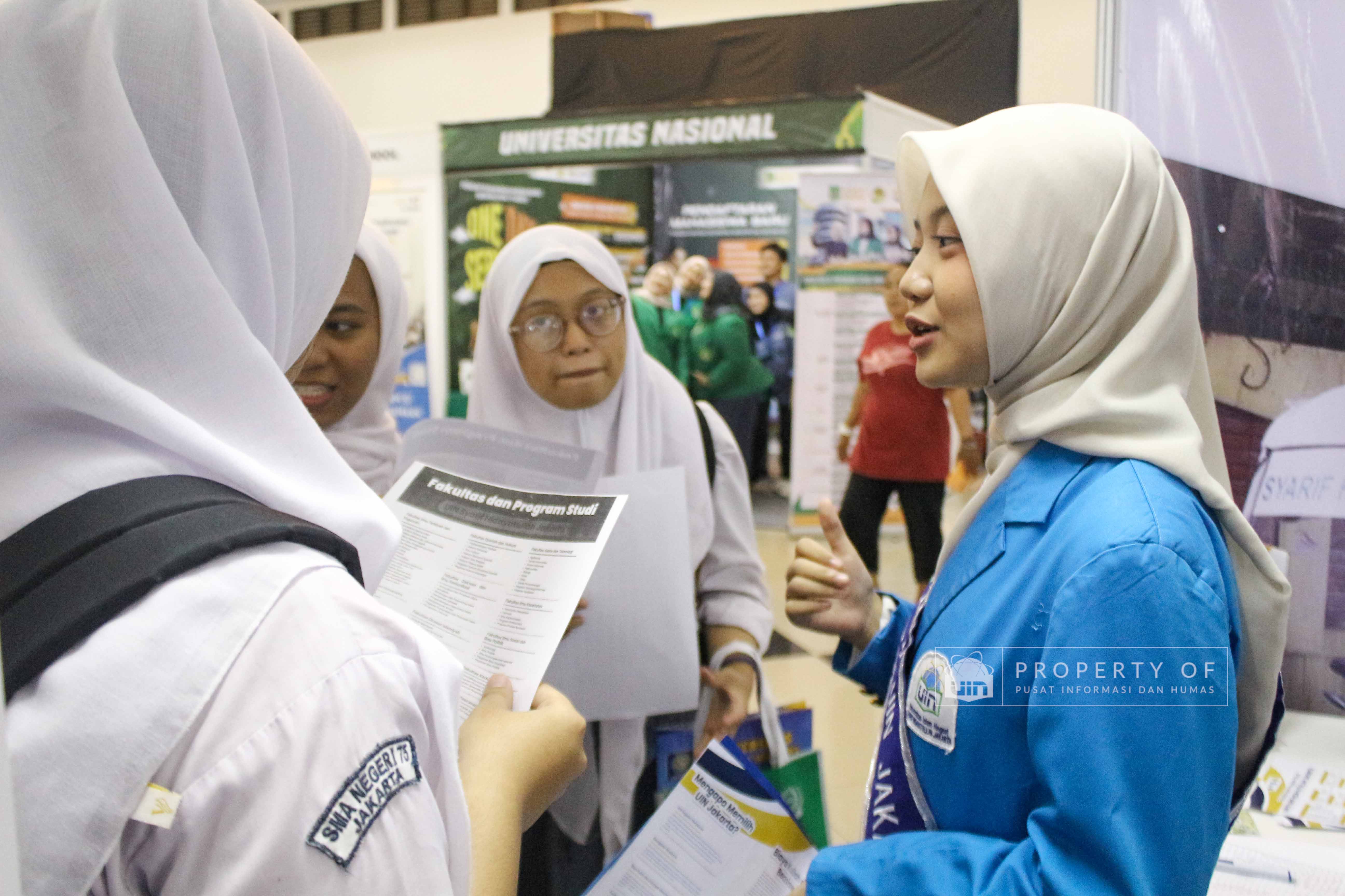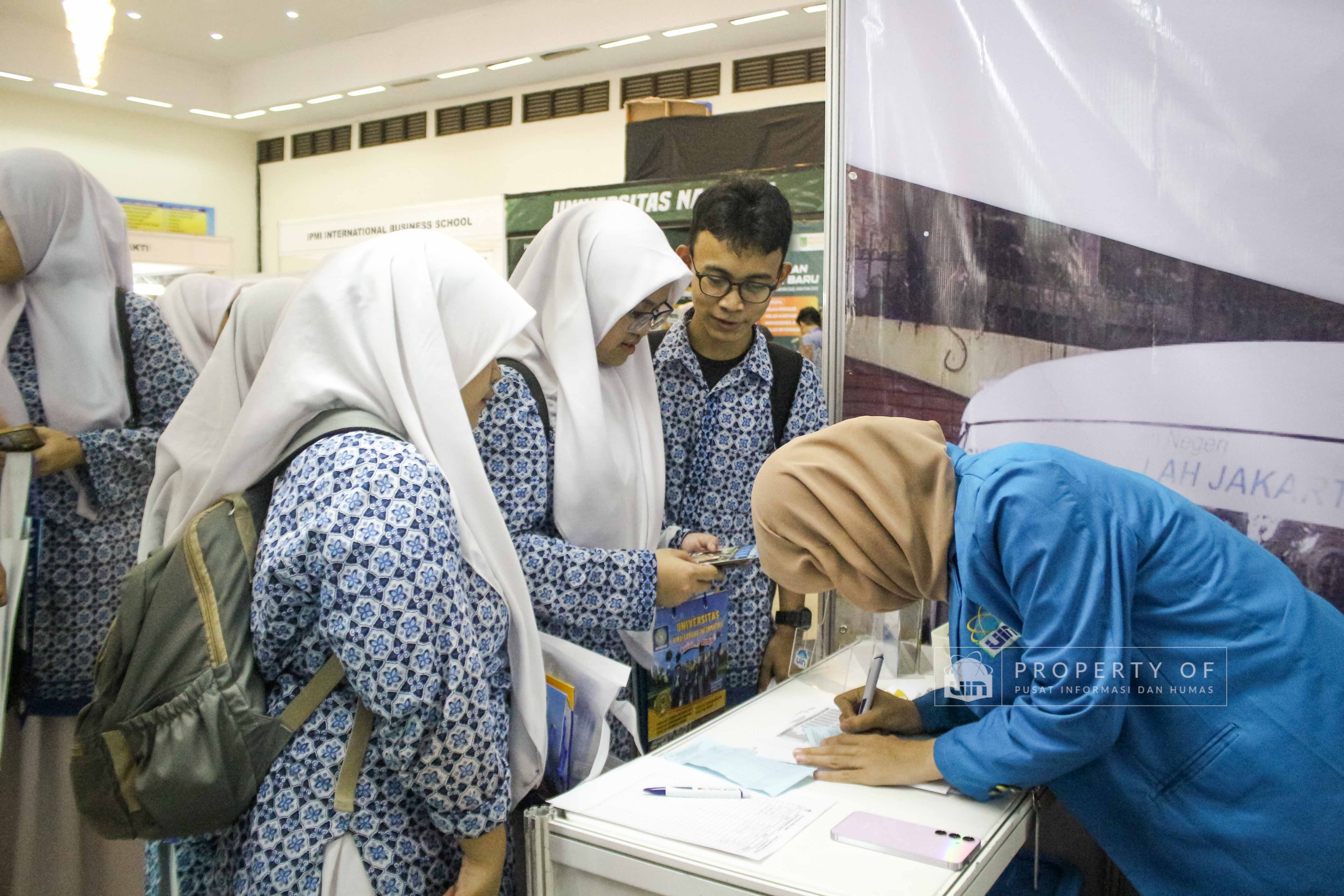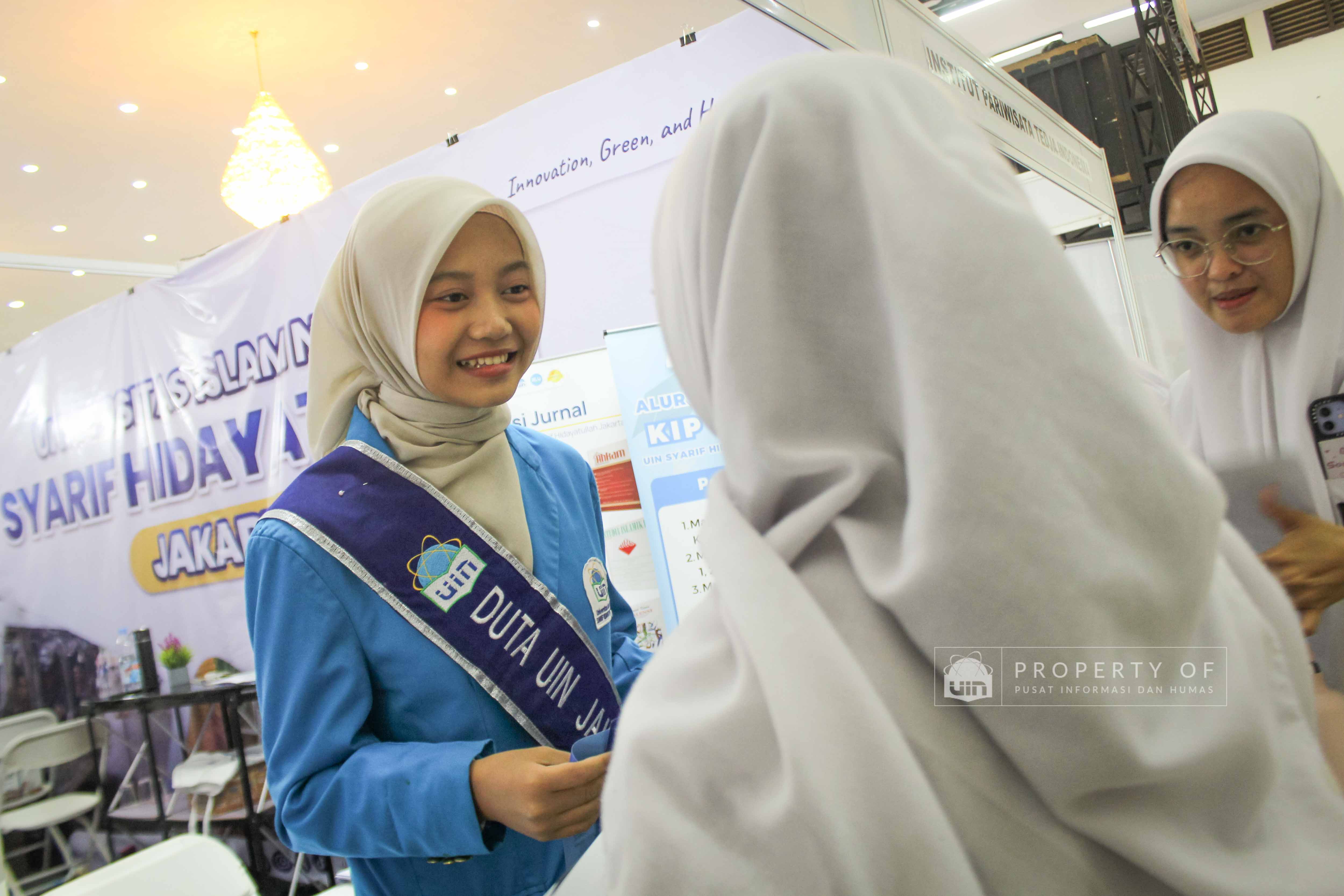UIN Syarif Hidayatullah Jakarta berpartisipasi dalam Pameran Pendidikan Tinggi 2025 Jakarta Campus Expo yang dimulai pada Selasa (11/11/2025). Dalam pameran yang berlangsung selama tiga hari tersebut, booth UIN Jakarta menyajikan informasi mengenai sistem pendidikan, fasilitas, dan penerimaan mahasiswa baru tahun 2025 (Fotografer: Aqilah Qurratulaini/ Teks: Nabila Azzahra Syawal/Pusat Informasi dan Humas UIN Jakarta)