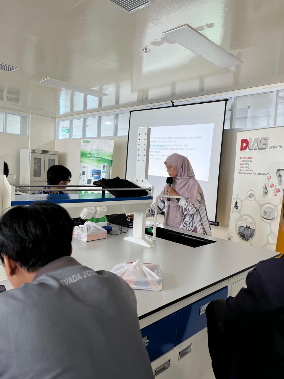 Perwakilan dari PT Murni Dharma Karya (Distributor DLAB), Suprapto memberikan penekanan dari sisi teknis penggunaan alat di lapangan. Ia menjelaskan bahwa efisiensi evaporasi tidak hanya bergantung pada suhu panas, melainkan merupakan hasil keseimbangan antara tekanan vakum, kecepatan rotasi, dan perbedaan suhu kondensasi.