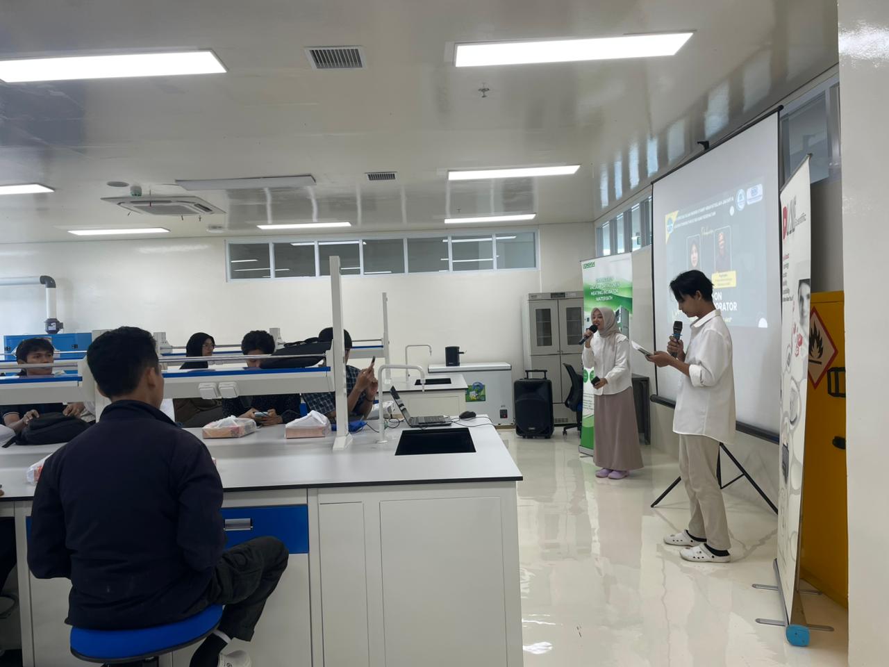 Dalam sesi pemaparan materi, Vivi Anggia, M.Farm., Apt., menjelaskan bahwa Rotary Evaporator merupakan instrumen esensial untuk memisahkan pelarut dari sampel cair melalui proses penguapan.