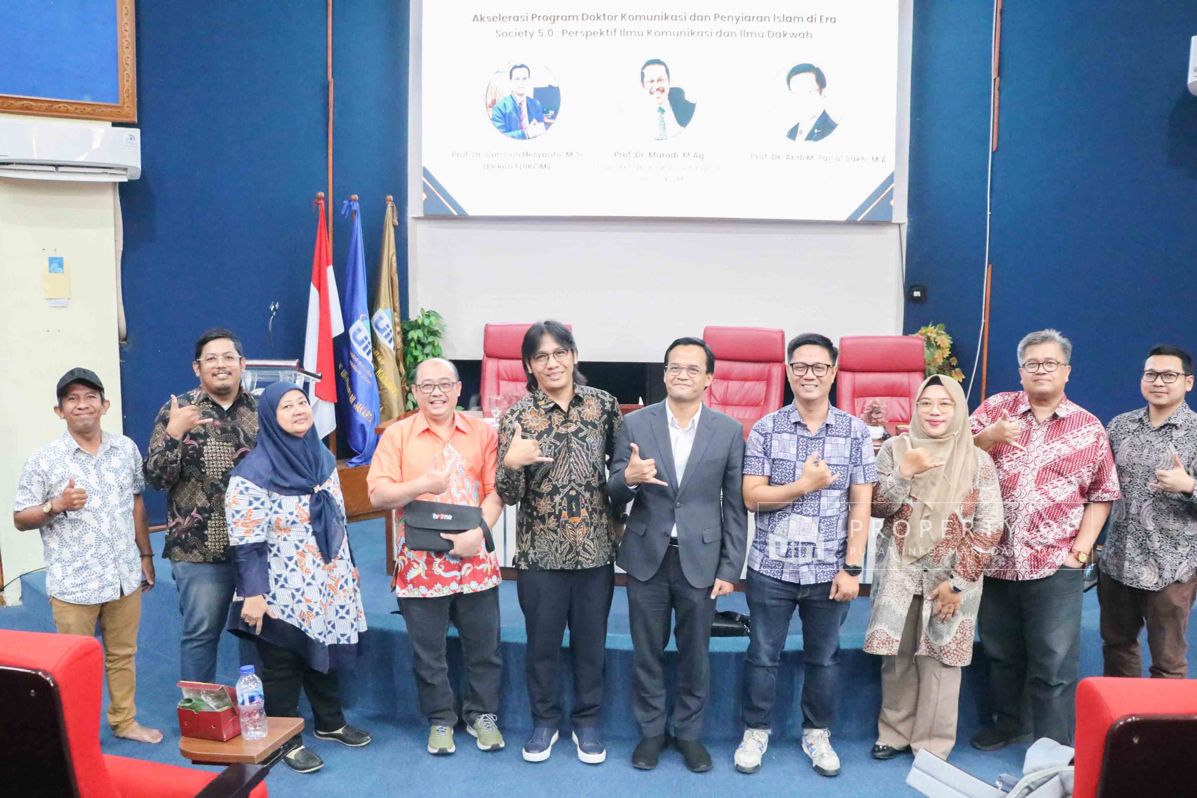 In his welcoming address, Dean of FDIKOM Prof. Dr. Gun Gun Heryanto, M.Si., opened the seminar by mentioning the importance of accelerating doctoral research development and congratulated the new doctoral students.