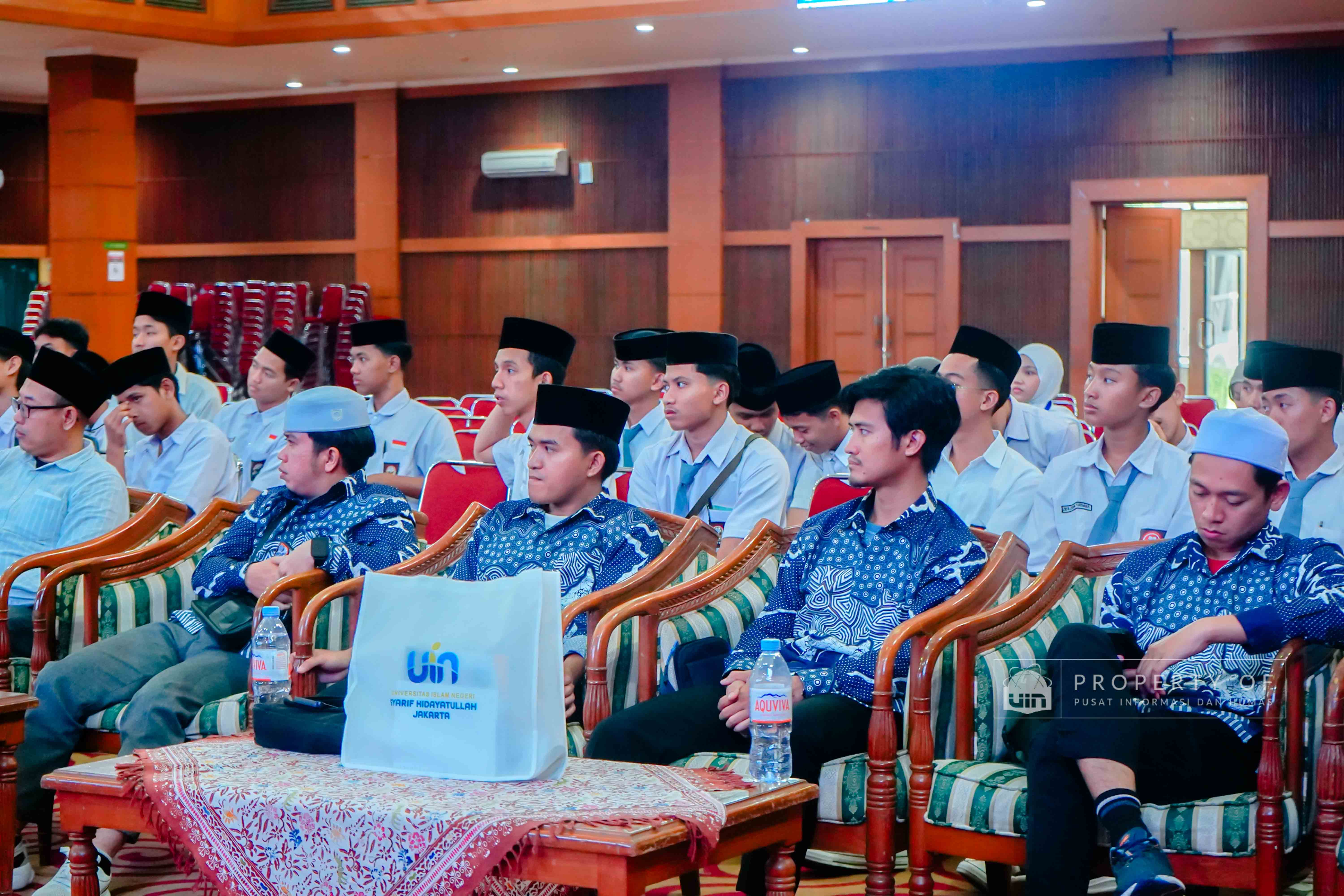 Auditorium Harun Nasution, Berita UIN Online – UIN Syarif Hidayatullah Jakarta menerima kunjungan edukatif dari puluhan santri dan tenaga pendidik Pondok Pesantren Putra Khoirul Roziqin, Beji, Depok, Jawa Barat. Kegiatan bertajuk Rihlah Ilmiah ini berlangsung di Auditorium Harun Nasution, Rabu (28/01/2026), dengan tujuan mengenalkan atmosfer akademik serta memotivasi para santri untuk melanjutkan pendidikan tinggi.